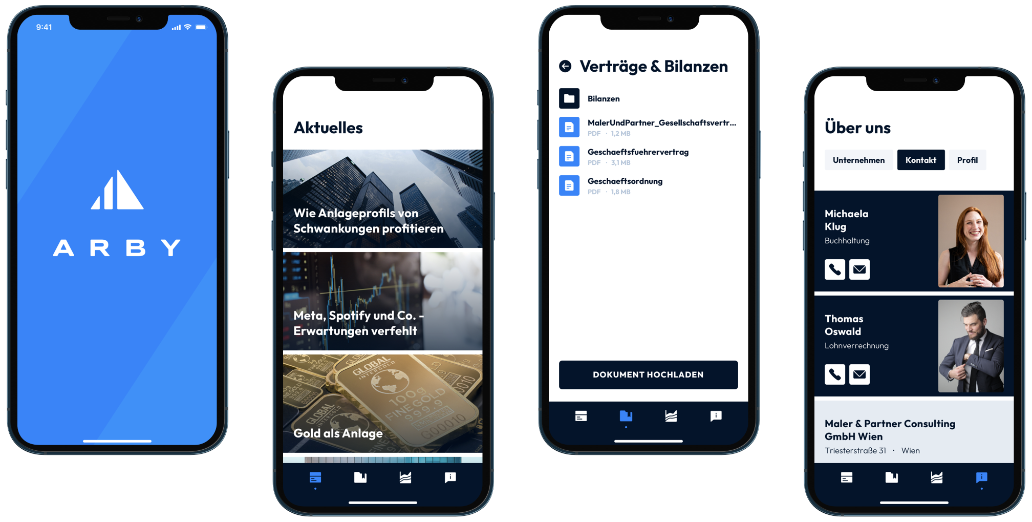 - Download von monatlichen Auswertungen, Überweisungen, Lohnzetteln, Dienstverträgen, Dienstzeugnissen, Bilanzen und Steuererklärungen